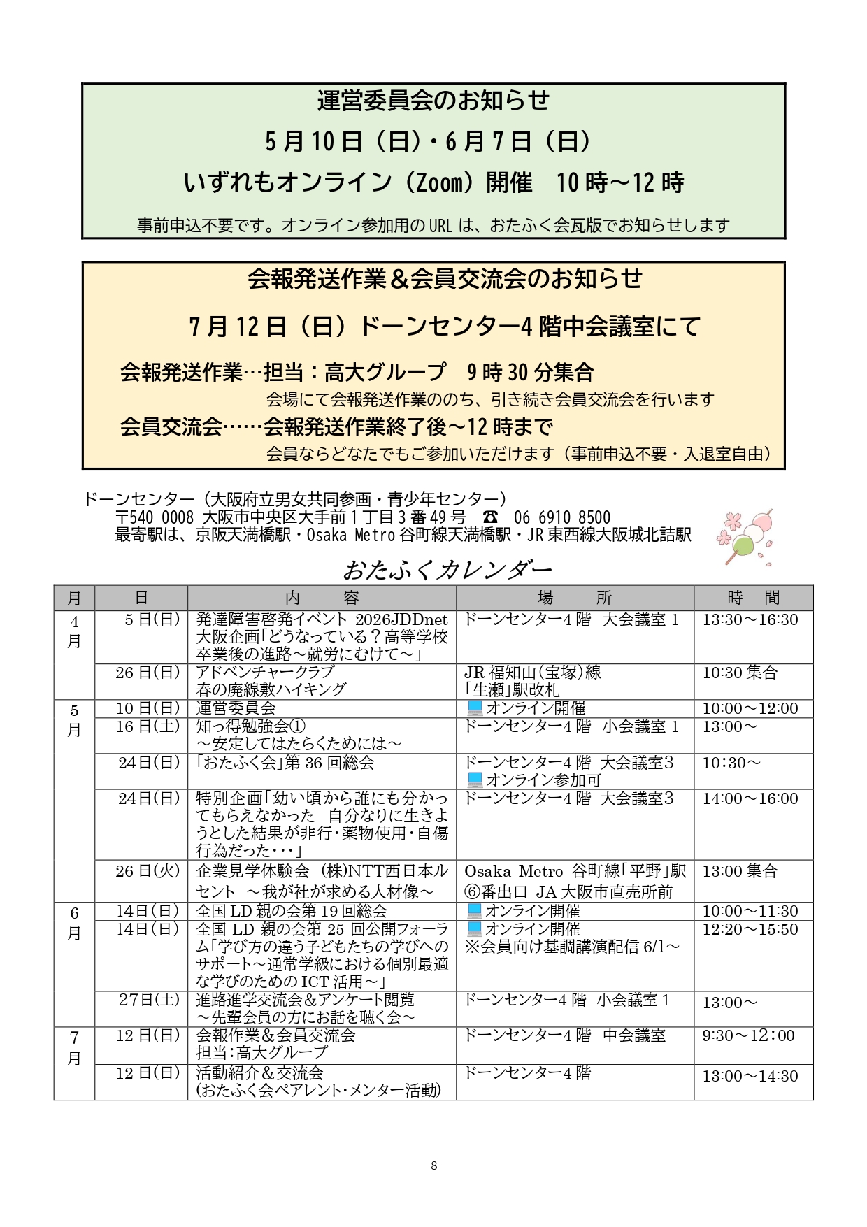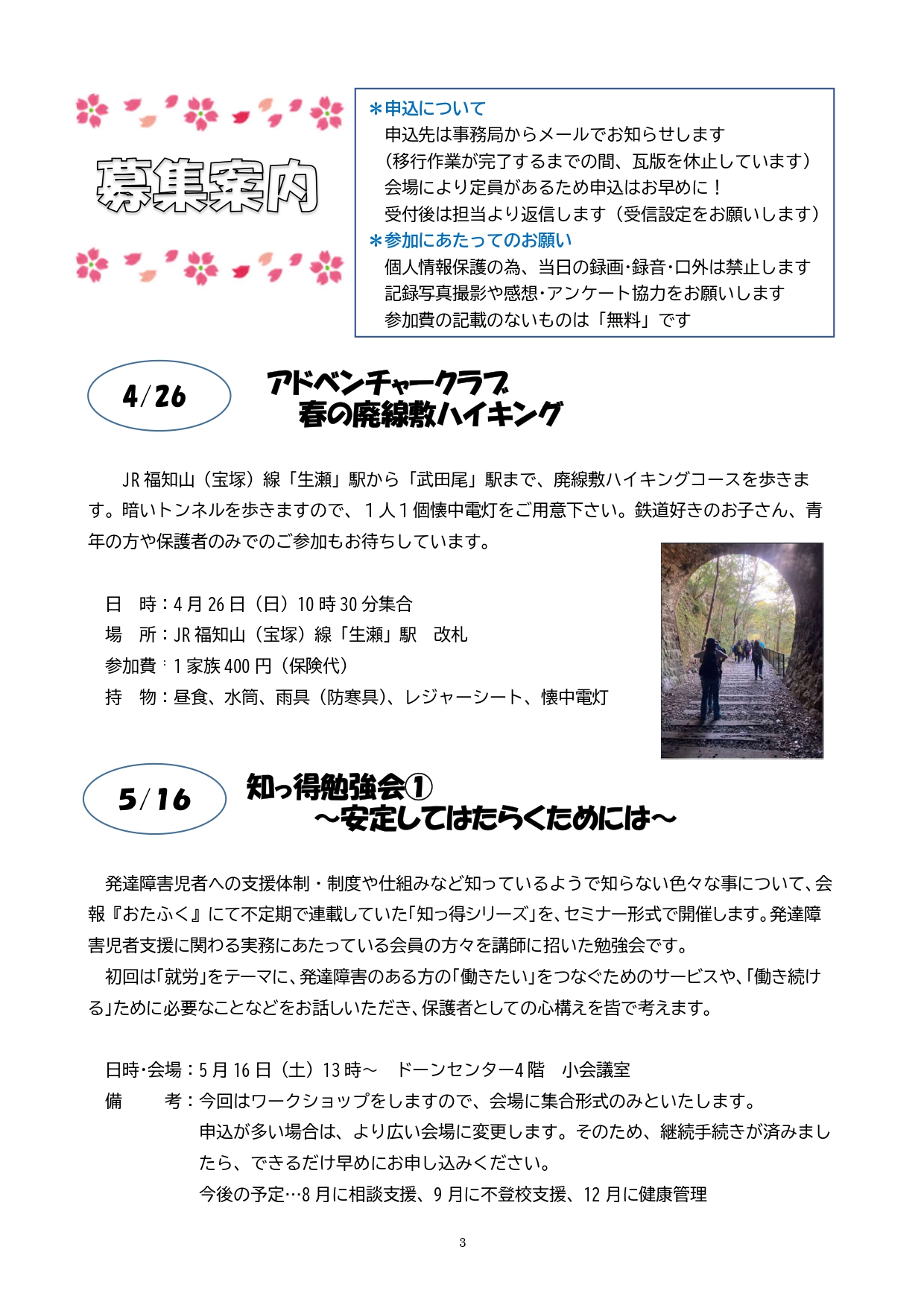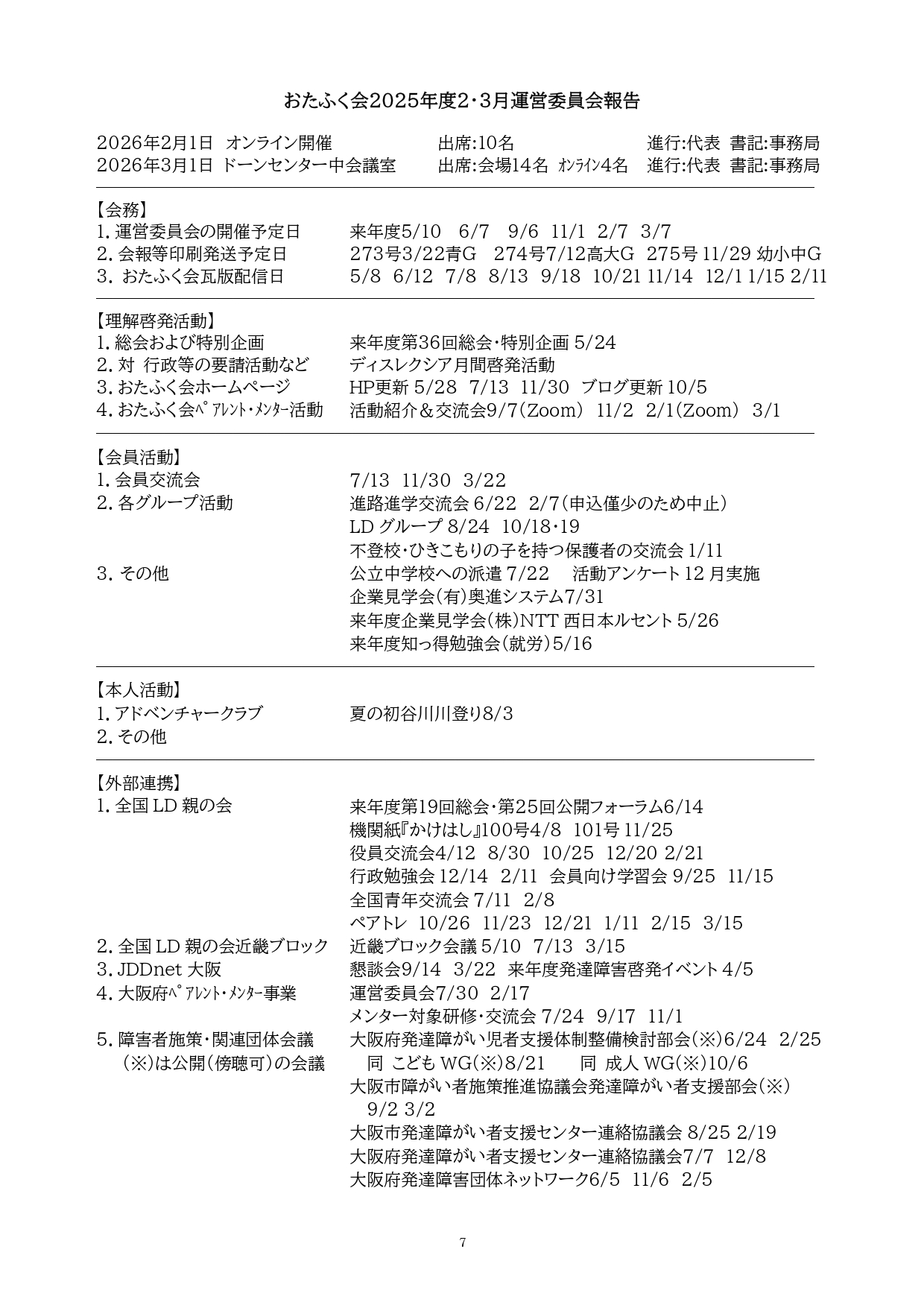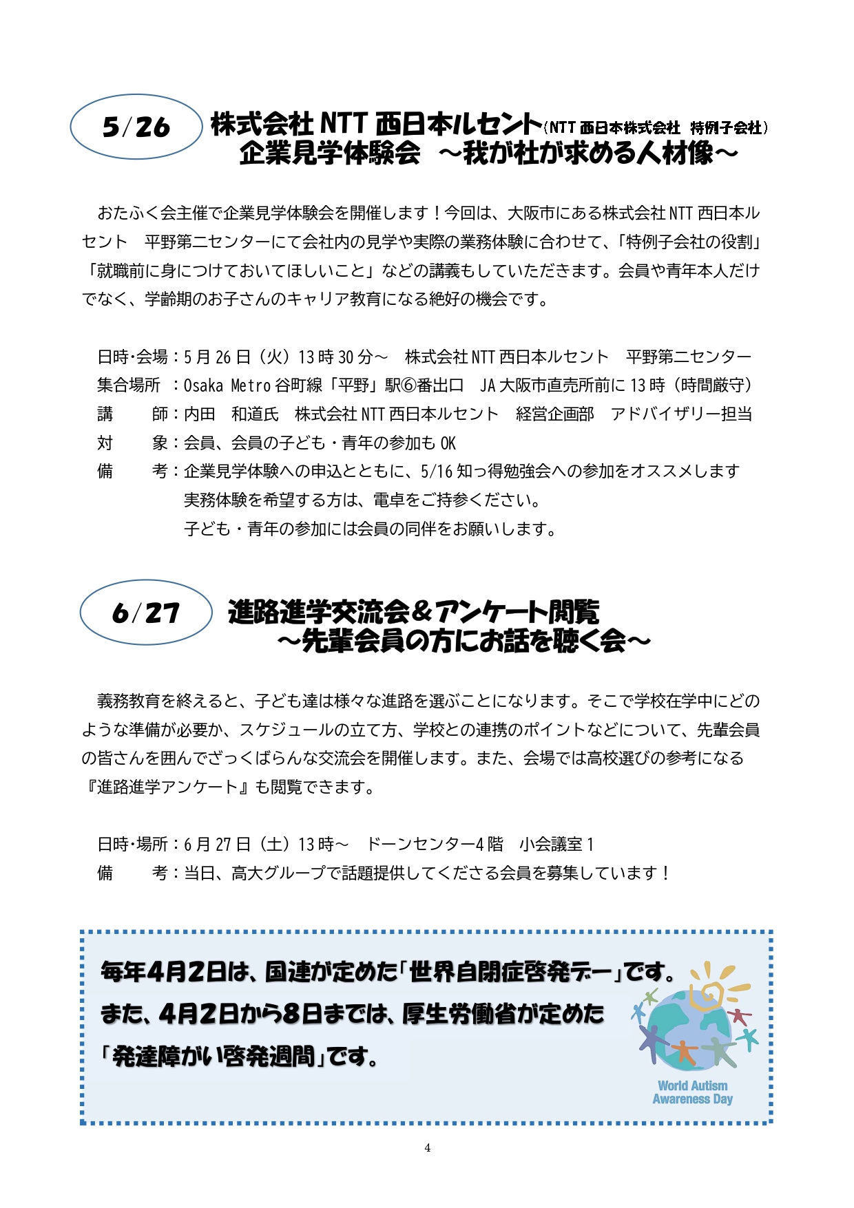 会員向け活動/本人向け活動/啓発活動など